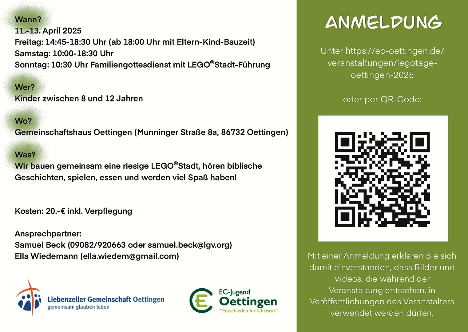 Zur Anmeldung für die LegotageDie wichtigsten Informationen für die Legotage 2025 sind auf der Rückseite unseres Flyers (siehe weiter unten) zu finden: